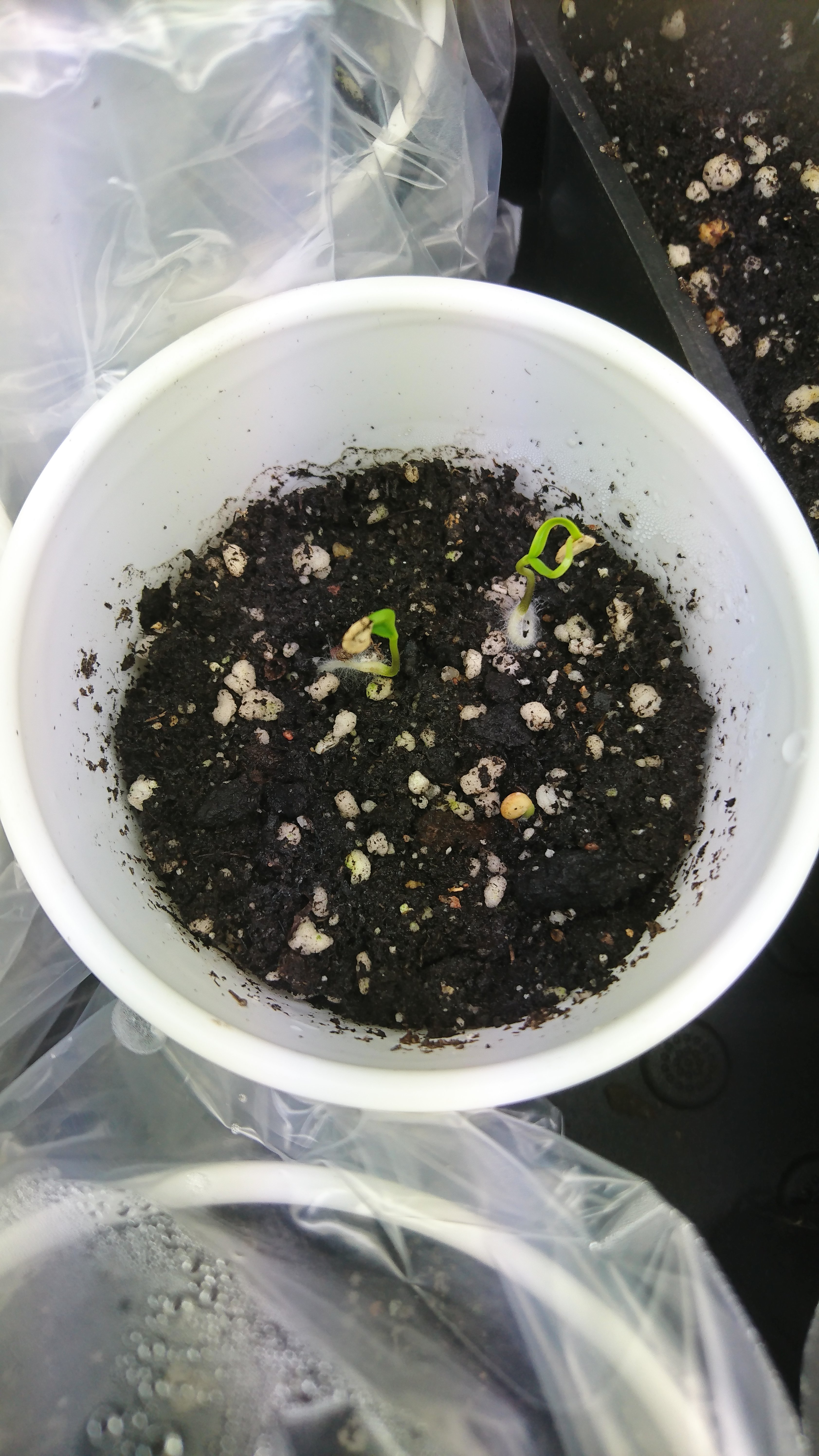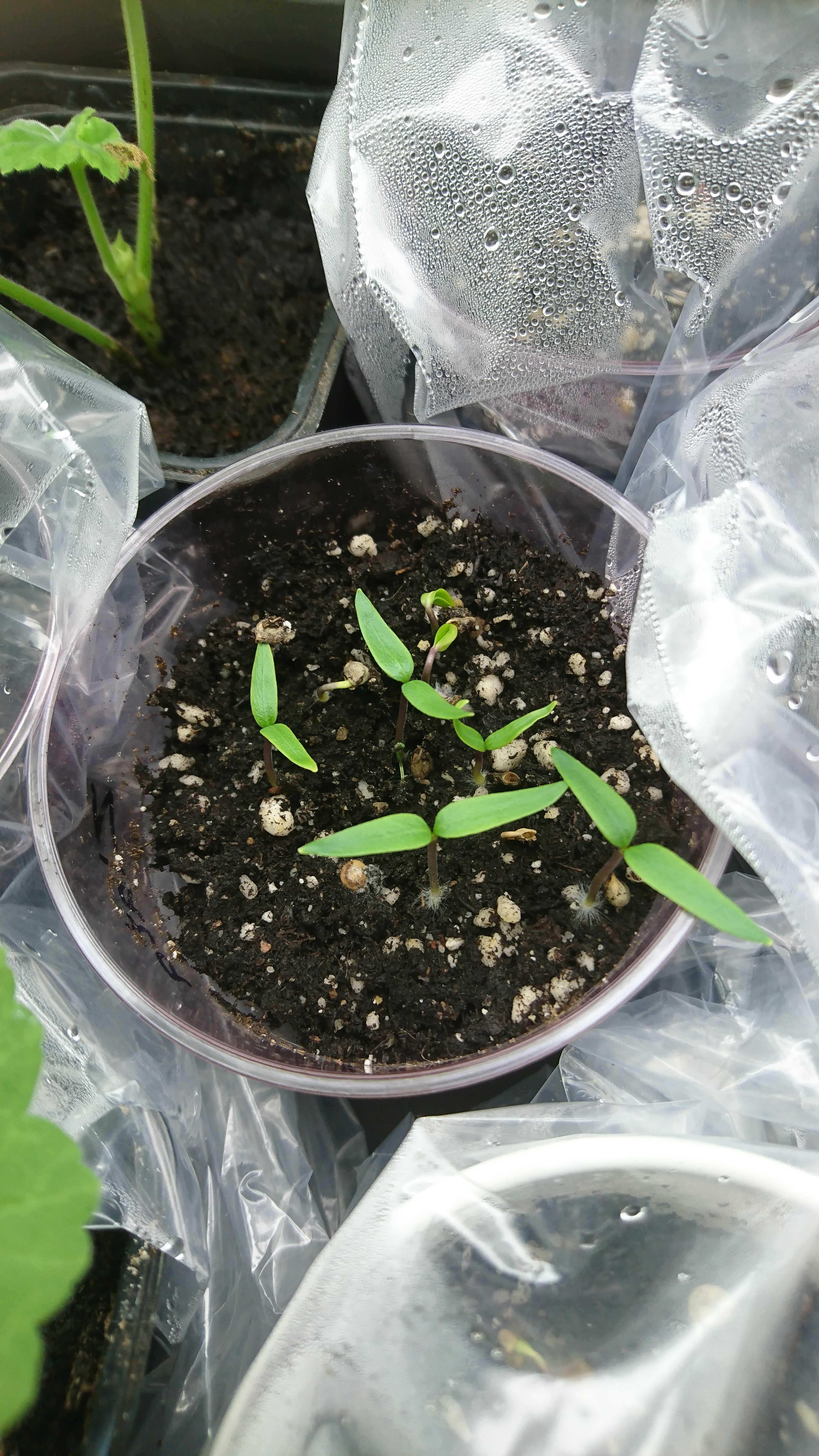 Parika och chili såddes, försök med några av fröna i Farbror Gröns bakpulverblandning genomfördes, dock är jag osäker på om det gav någon nämnvärt snabbare grotid. Däremot upptäckte jag att de skulle ljusgro, och oj vad roligt! Då kan man ju följa hela processen med frö-rot-blad. Och egentligen – hur gör fröna när de inte får hjälp? I det fria går de ju inte direkt och gräver ner sig för att gro, de allra flesta blåser ju iväg/ramlar rakt ner på jorden och gör sitt bästa. Desto roligare för mig alltså 🙂