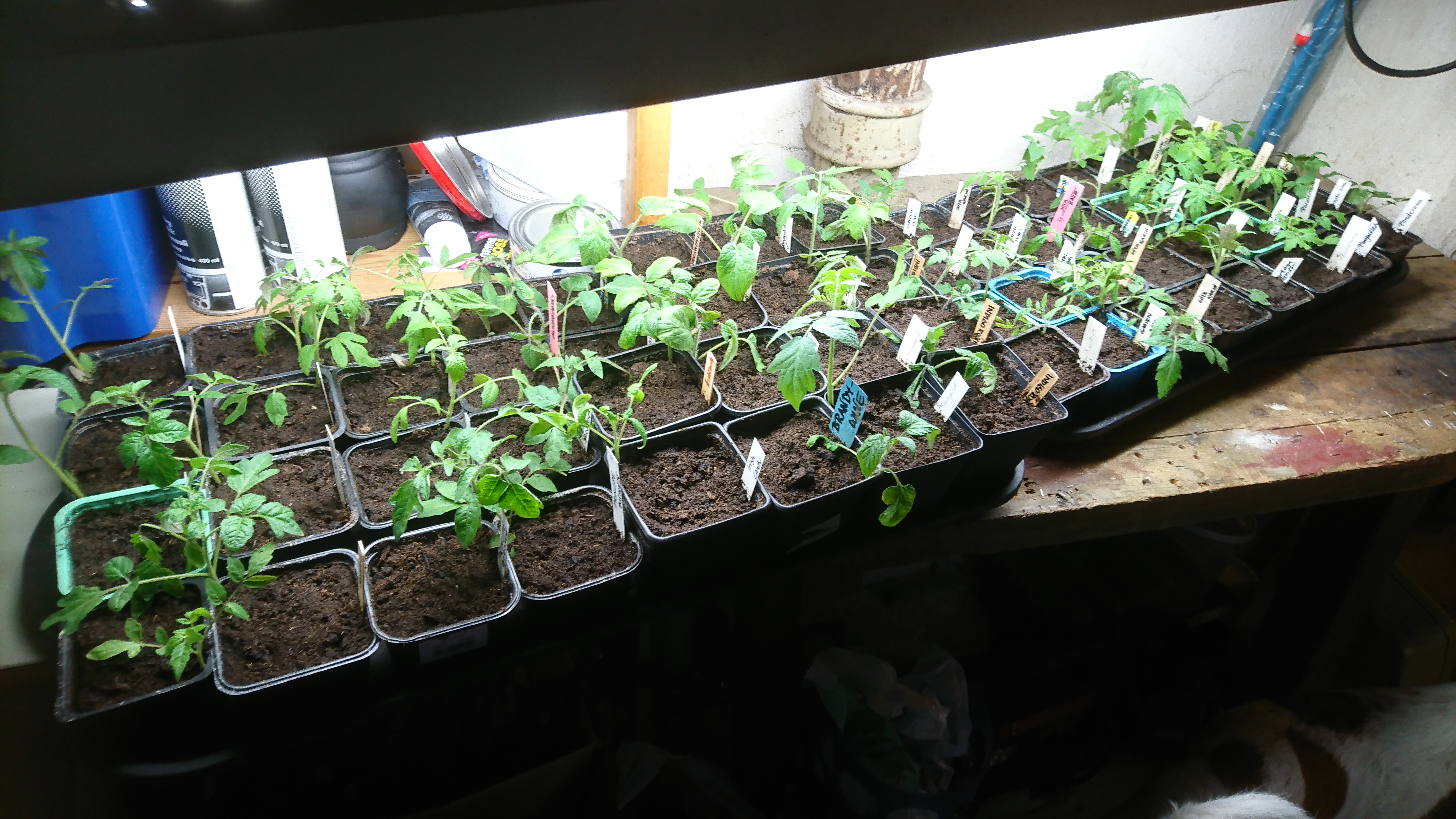 Pelargoner och lite annat har fått komma fram från jordkällaren. Vissa är jag väldigt tveksam till om det kommer att gå att få liv i igen, potatisblomma tex. Den ser extremt död ut och det skulle förvåna mig om den kan återgå til de levandes skara. De flesta av pelargonerna kommer sig nog dock, det brukar de ju göra.