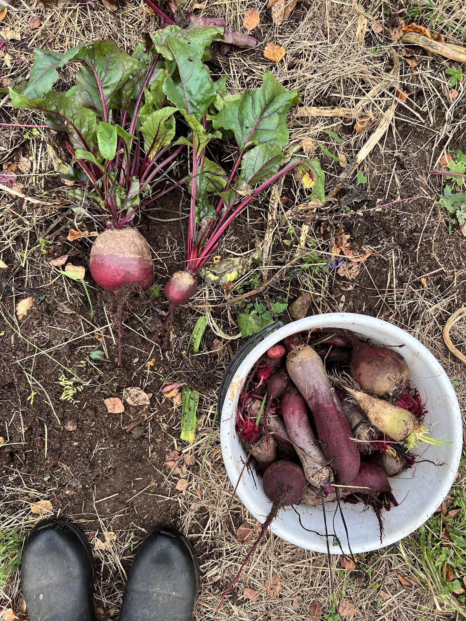 Rödbetorna har blivit fina, tänka att det som är så litet att det får plats i en fröpåse kan bli en hel hink med mat! Morötterna är också jättefina! De sistnämnda har ju vuxit helt i sand, vilket jag tycker är förundersamt, att de som fått endast gräsklipp vid ett par tillfällen i sommar kunnat växa till och faktiskt blivit riktigt fina morötter. Läste dessutom lite mer om morotsflugan i somras; den kan tydligen inte komma ner till moroten om det ligger gräsklipp i vägen 😏. Och jag som har flyttat runt min låda och bytt ut sanden för att jag trott att flugan kommer om jag har den kvar på samma plats och med samma sand. Man kan alltid lära sig nya saker när man odlar! Nästa år behöver jag alltså inte flytta på lådan 🥰