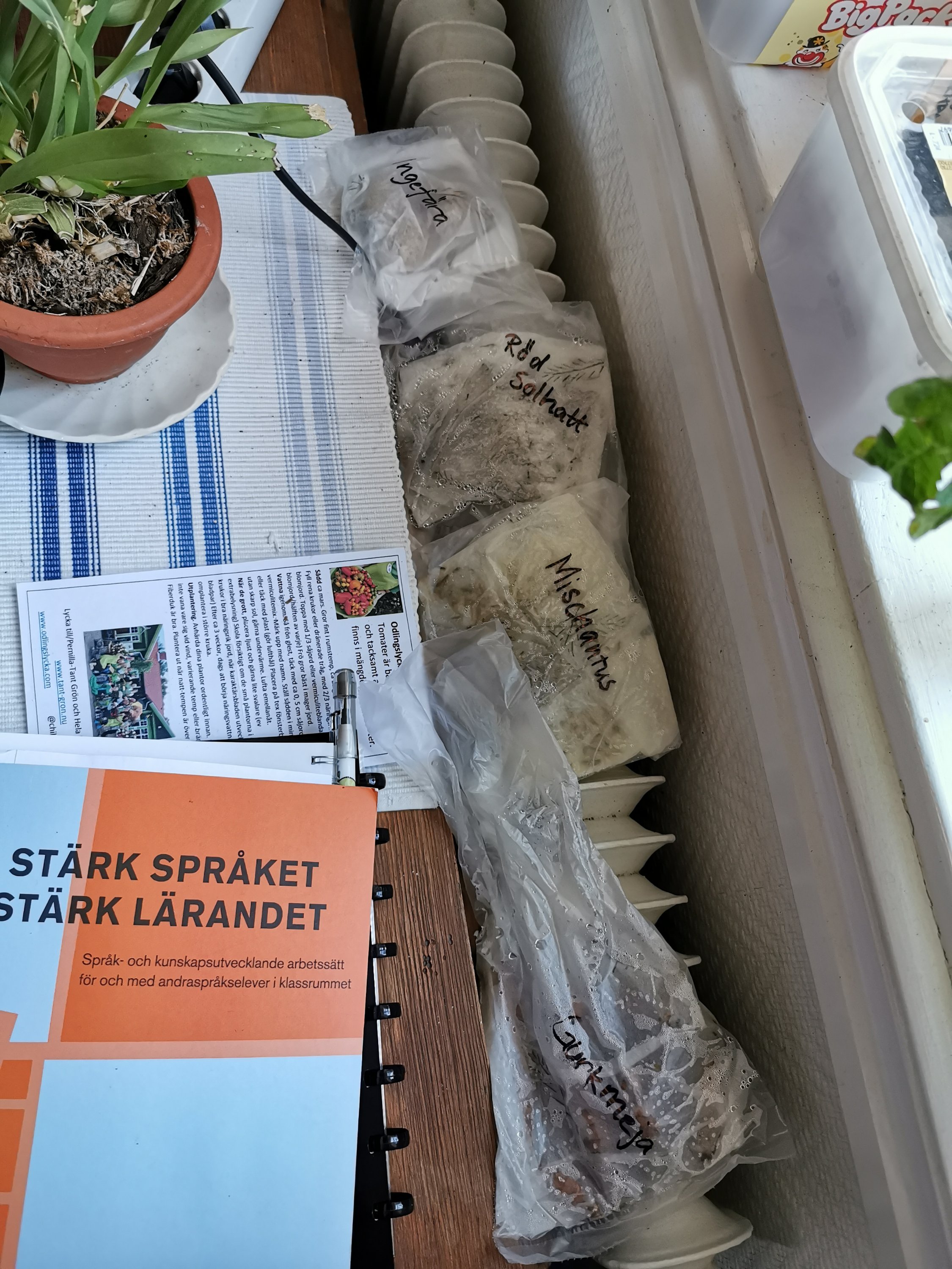 Tanken var att jag idag också skulle ha sått några av de långsamma blommorna som ska få stå ute i kylan ett tag; Jätteverbena, rosenskära, malva mm. Alltså, jag är bara såå långsam. Men skönt, nu har jag lite såjobb kvar att njuta av ☺️