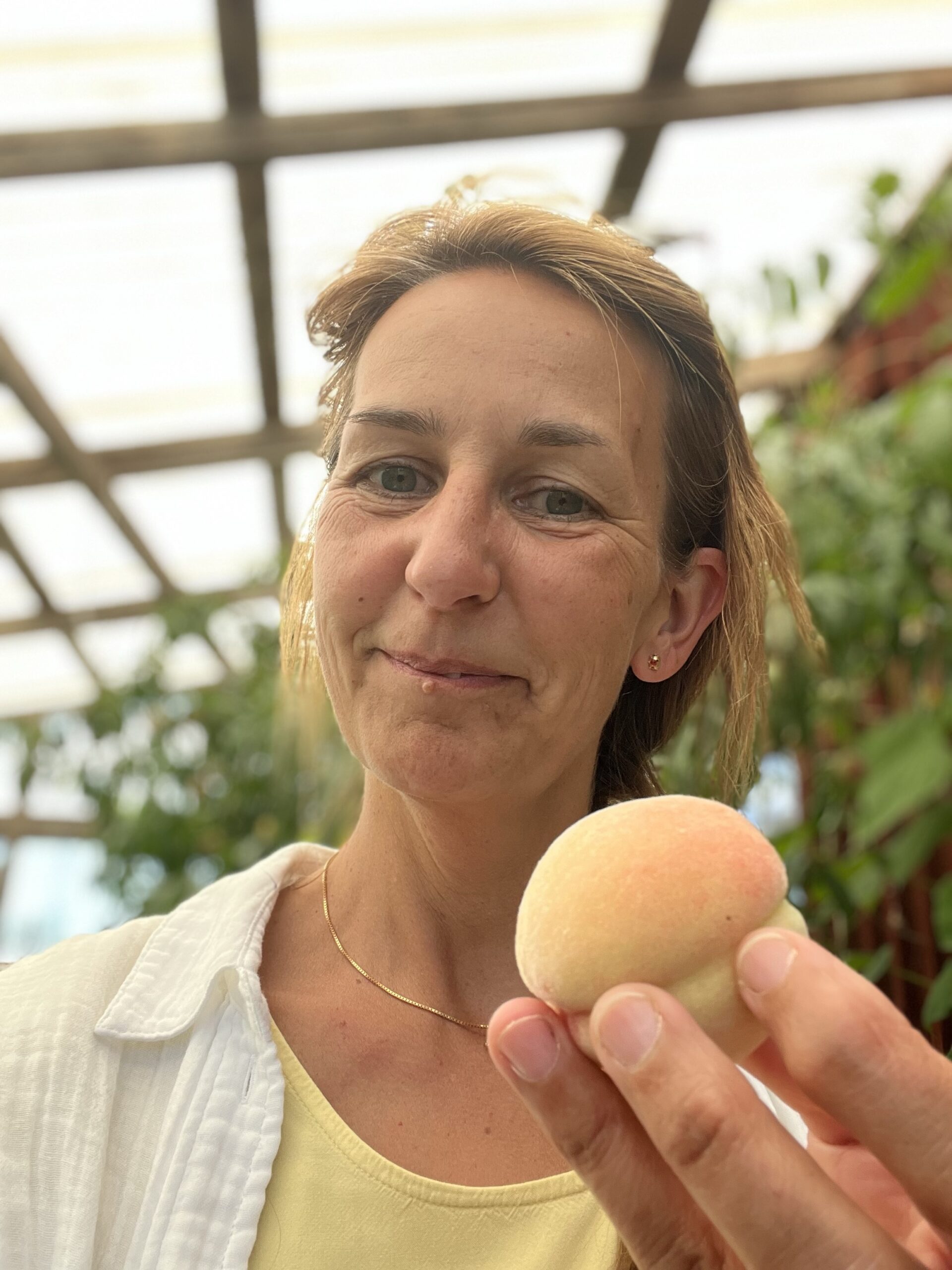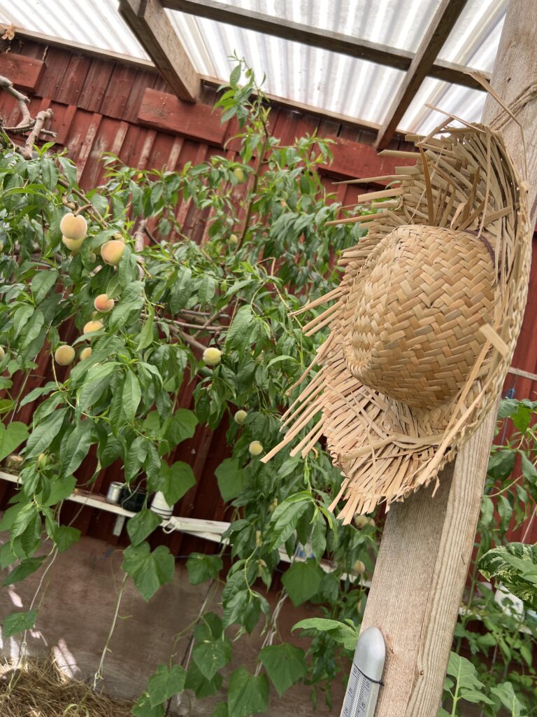 Jag är också lyckosam att ha ett persikoträd i växthuset som håller mig med färska fina frukter under ett par veckor varje sommar och dessutom årsbehovet av smoothie och grund för pajer och kakor etc.