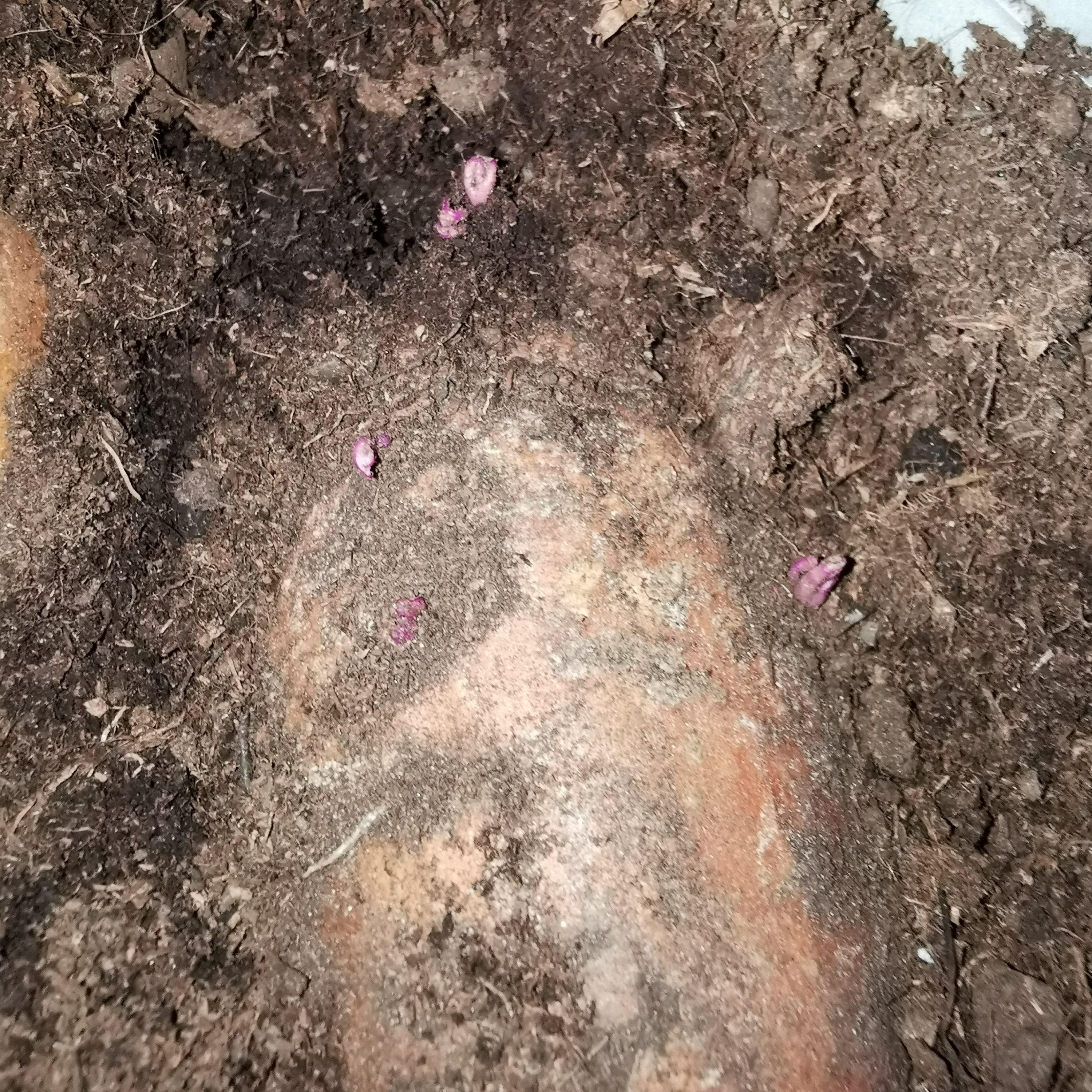Knölarna placerades i lätt fuktad jord, i balkonglådor på ett bord vid ett element där knölen tittade upp lite ur jorden.