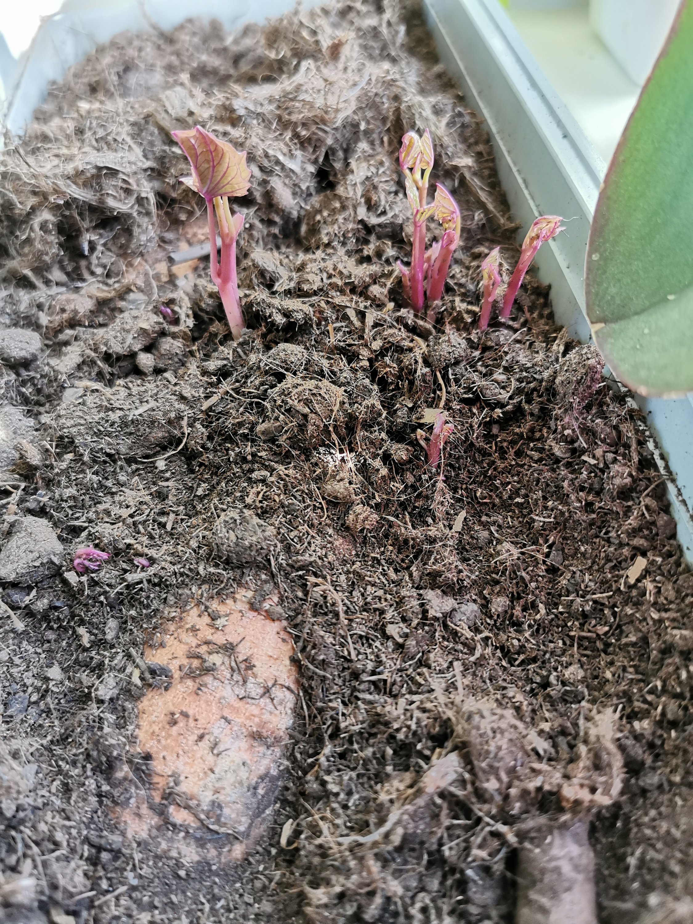 En av knölarna fick till sist skott som planterades och togs sticklingar på.