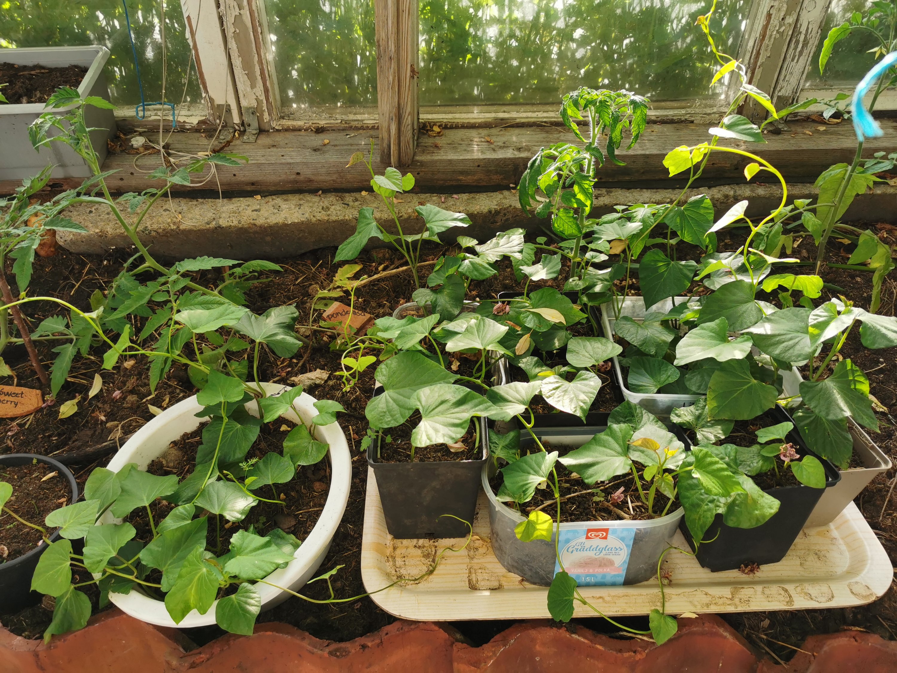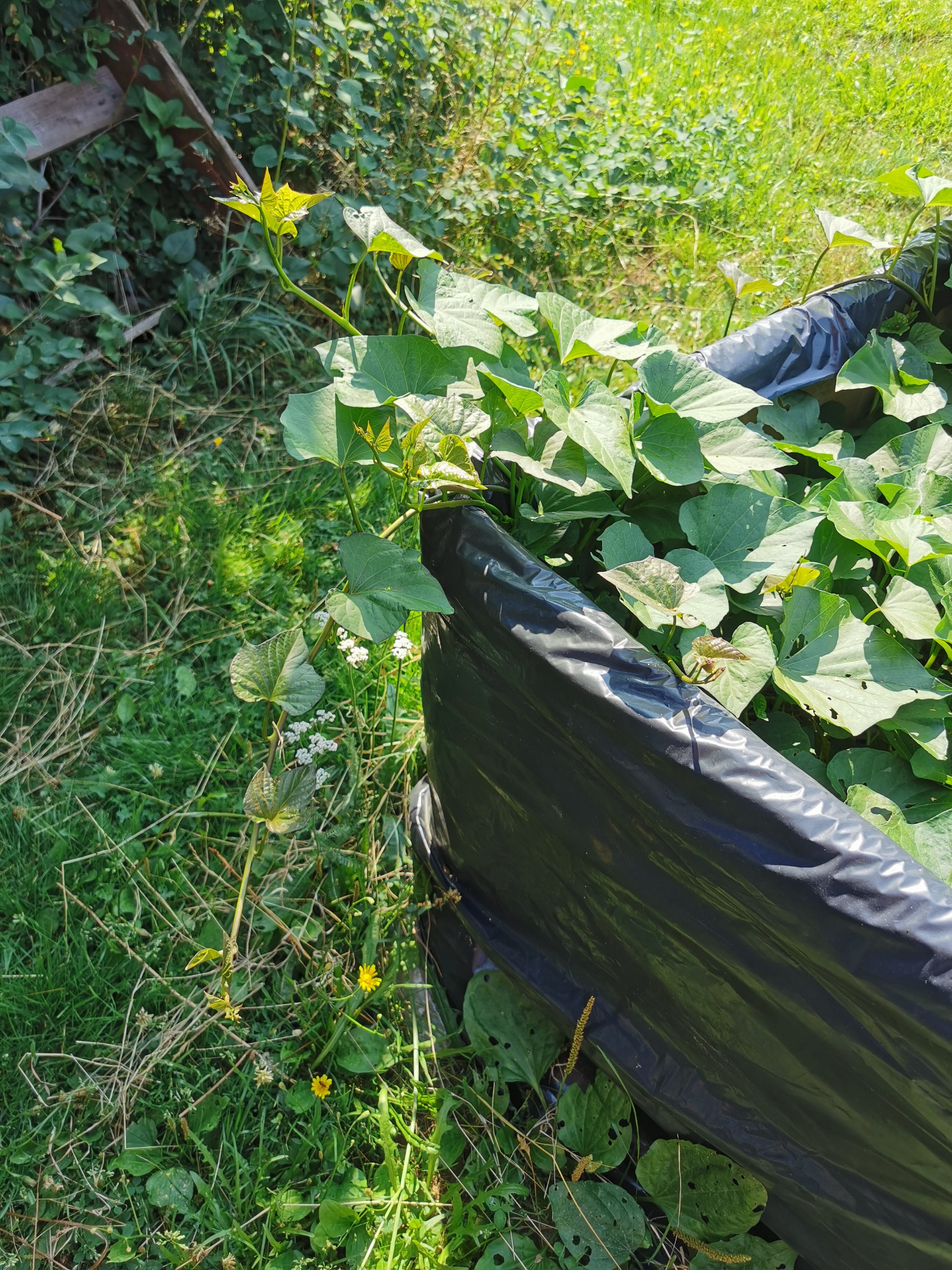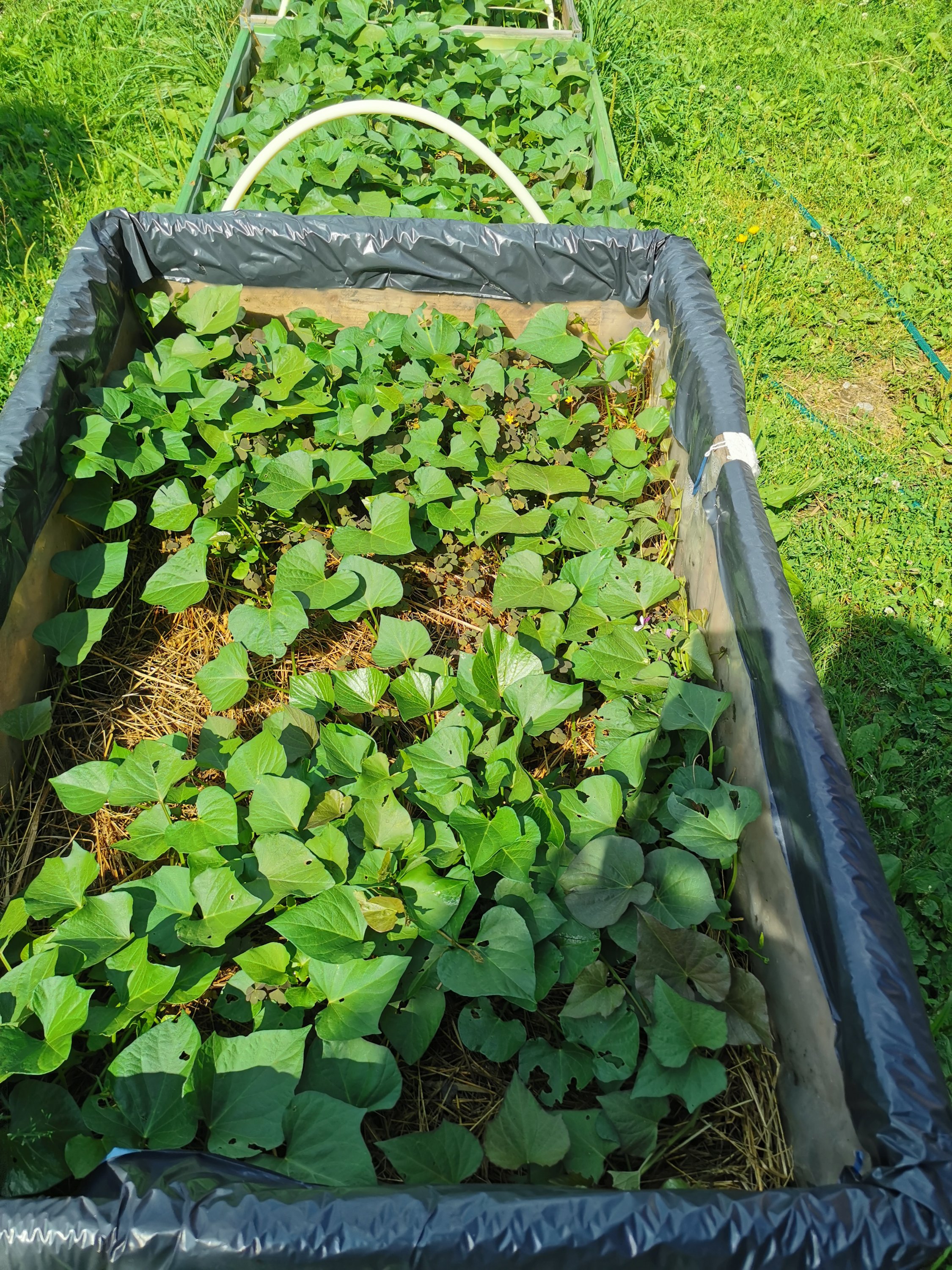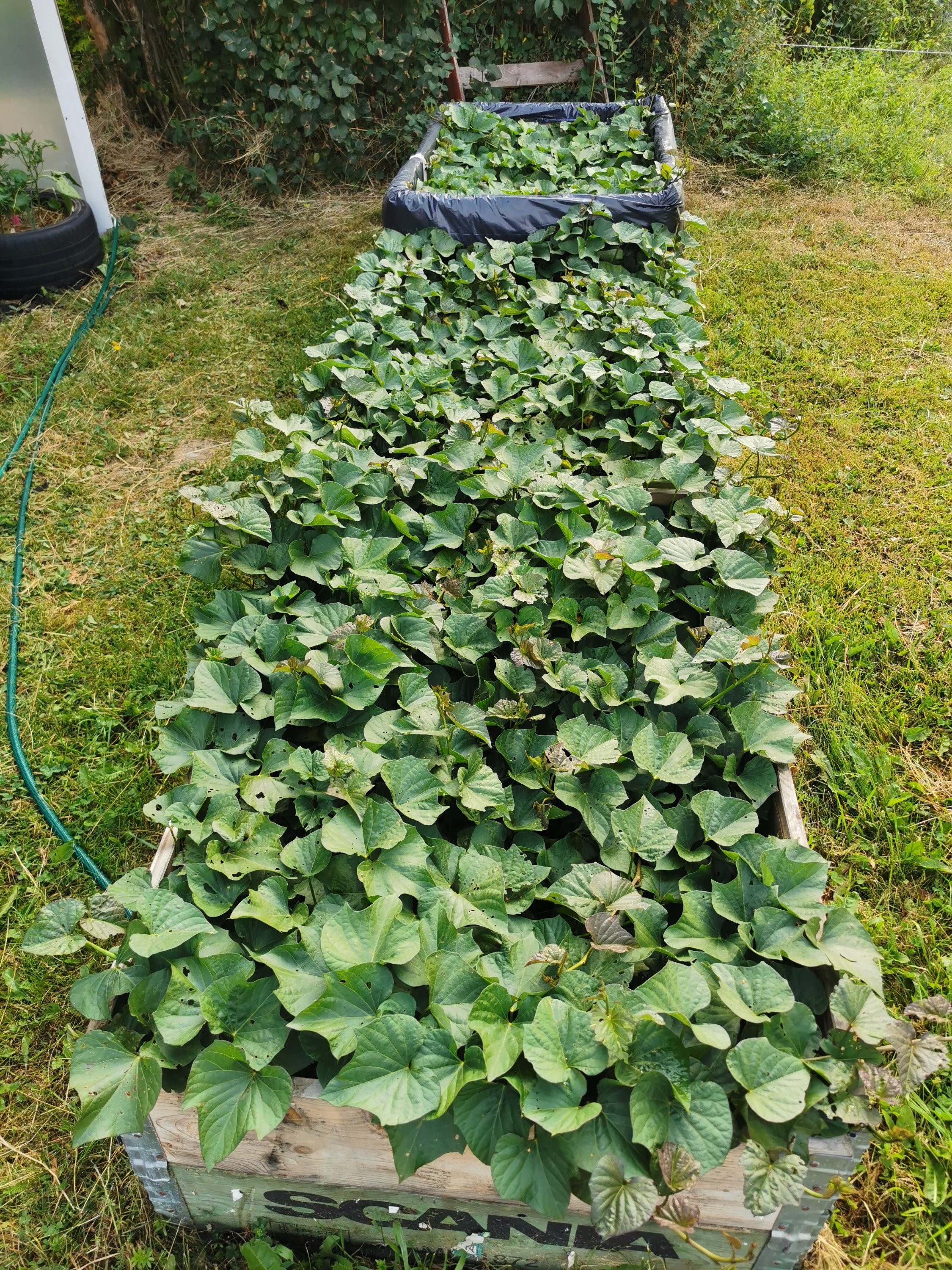Värt att tänka på för odlingen är att sötpotatis vill ha det varmt. De går också djupt ner i jorden vilket gör att upphöjda bäddar är bra. De är nog inte extremt fuktkrävande men jag har ändå sett till att de fått en del vatten. Året innan hade jag ett par plantor som jag inte vattnade på samma vis och det blev inte lika stora knölar. De gick också extremt djupt ner vilket kan tyda på att de sökte vatten. Det var en ren slump att jag upptäckte att det öht fanns några knölar där.