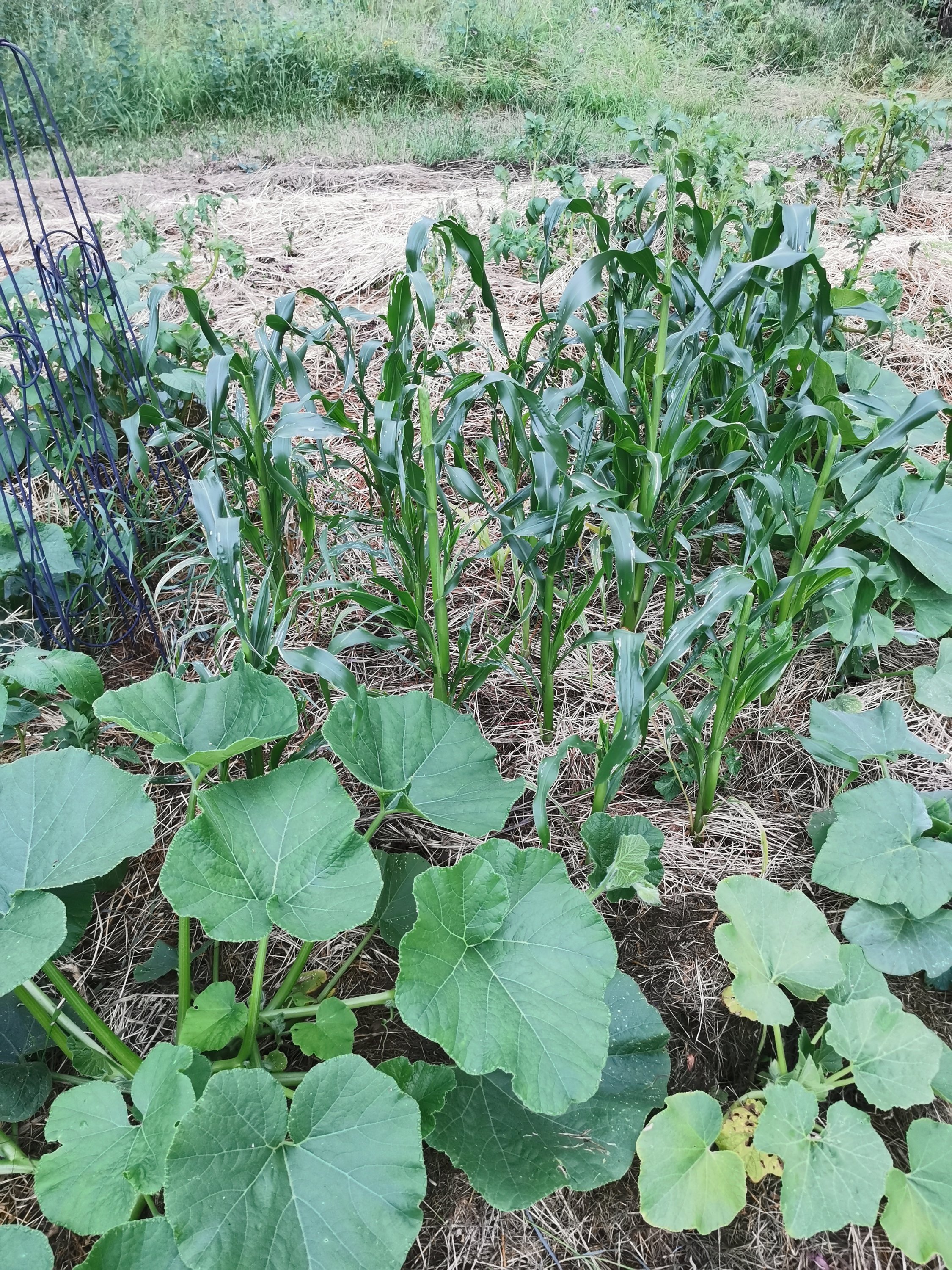 Planeringen för grönsakerna är att jag flyttar runt på dem varje år i någon slags växelbruk. Dock tenderar jag att odla mer av sånt som kräver ganska mycket näring (majs, pumpa, kål) och mindre av sånt som laddar jorden (ärtor, bönor etc). Det betyder att jag får vara frikostig med jordförbättringen och lassa på med mycket kompost, hönsskit och täckmaterial. Förresten läste jag nyss att Sara Bäckmo gjort analys av sin jord och fått så enastående bra värden på den, och det hon i princip använder är täckmaterial. Nog för att man kan se att jorden blir bättre på flera sätt vid täckodling; jordstrukturen blir mulligare och mer fukthållande och växterna frodas, men det är ändå kul att få det svart på vitt.