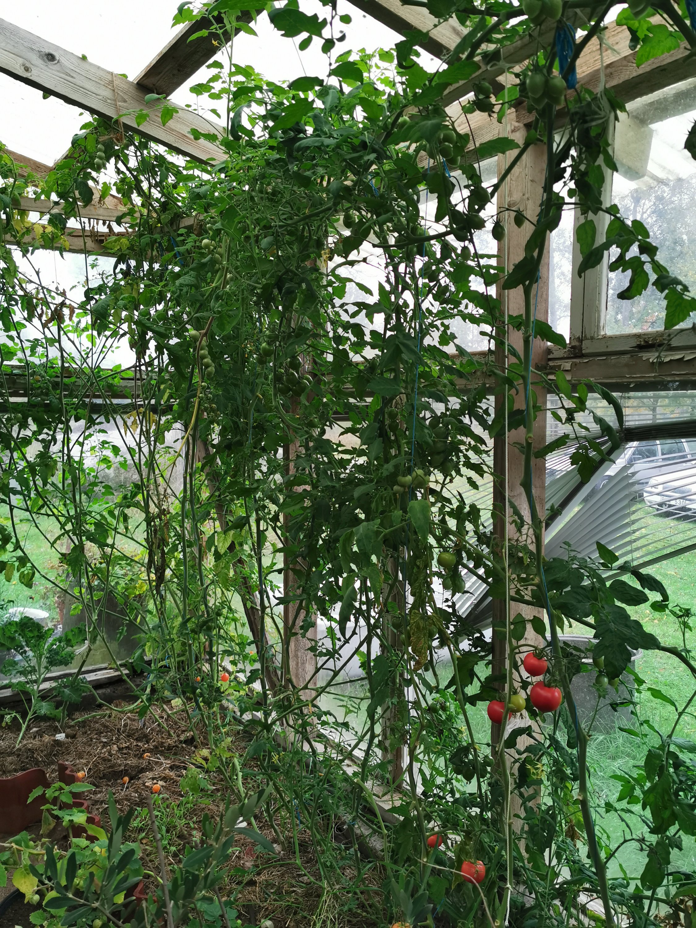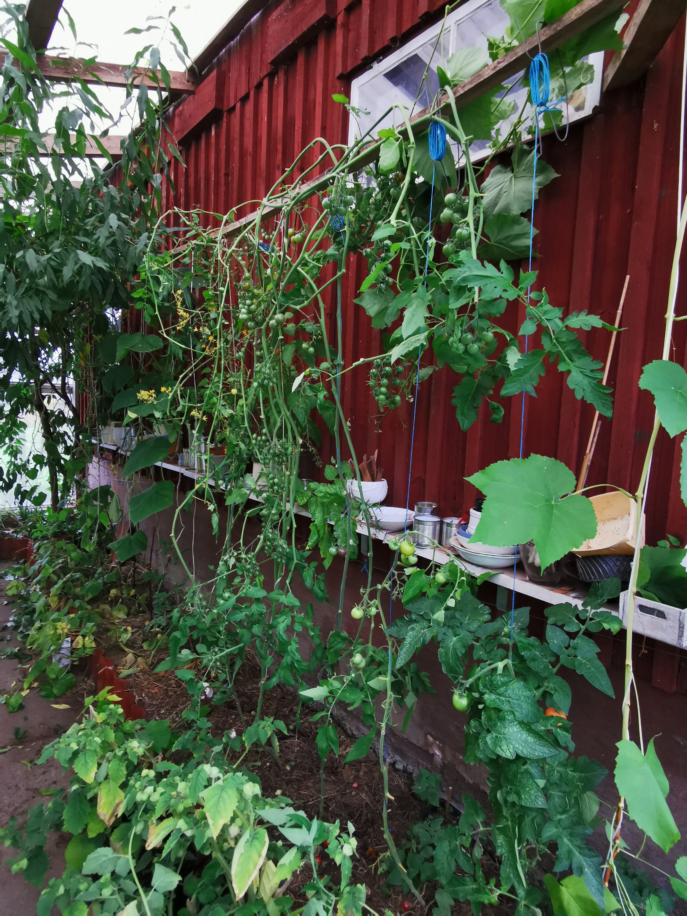 Okej, nu ska jag rycka upp mig! Oktober har varit superfin, man har kunnat fixa och greja jättemycket! Tomatskörden har nått en ny rekordnivå; nästan 90kg (jag tror att det får bli ett eget inlägg om årets tomater lite sen), den puttelilla sötpotatisskörden är bärgad (1,5kg), dahliorna är uppe, sorterade, torkade, förpackade och inställda i jordkällaren. Alla perenner och buskar jag fyndade på sensommaren har kommit på plats i rabatten, 370 tulpan-, narciss-, krokus- och våririslökar har kommit i jorden. Växhuset är urstädat, fuchsior, fikon och faktiskt även olivern har kommit till sina vinterstationer. Morötterna är skördade (29kg, rekord här med) och står i jordkällaren tillsammans med ett gäng pelargoner och dahliorna. De mindre pelargonerna står nerklippta i plantrummet.