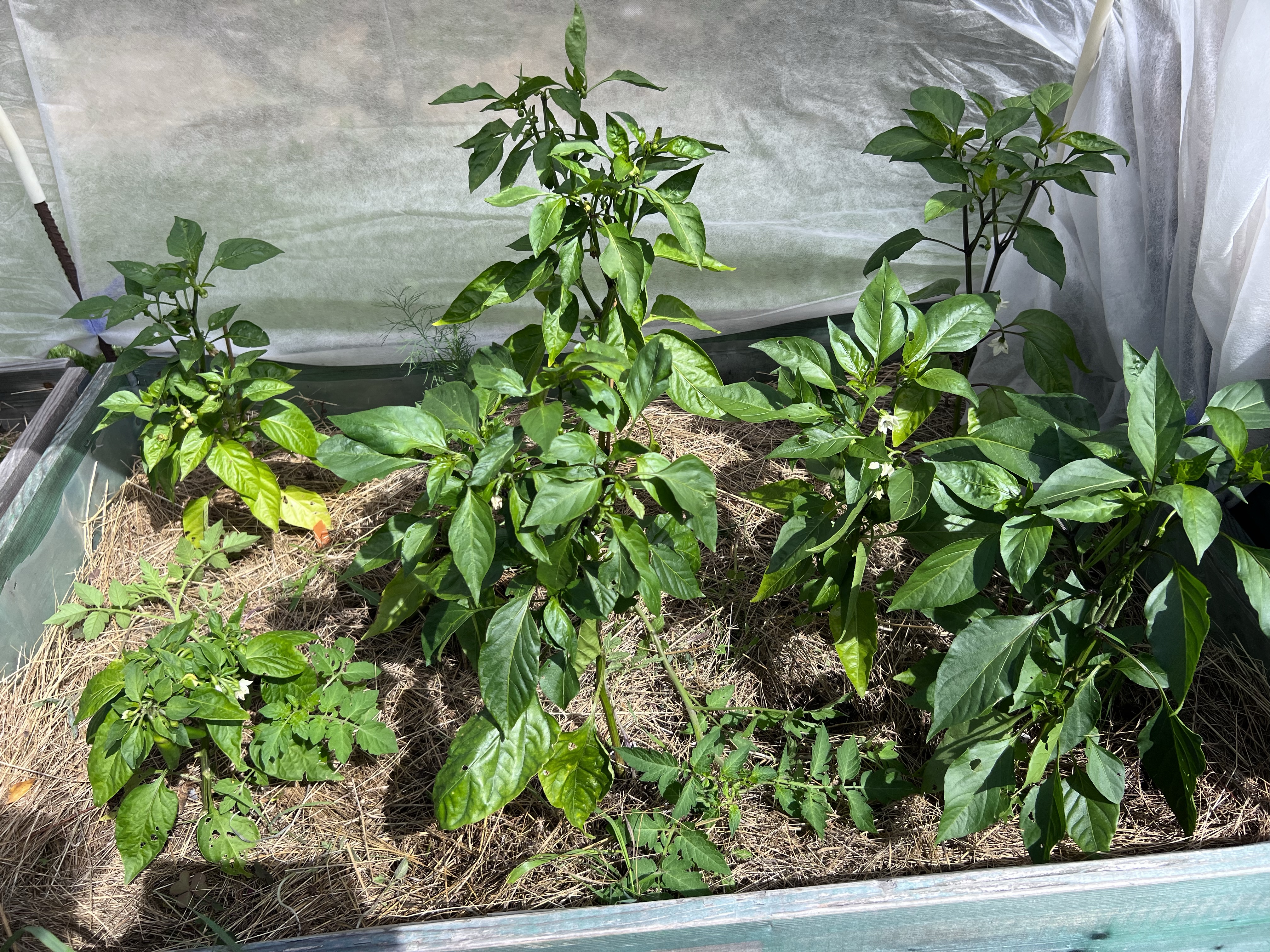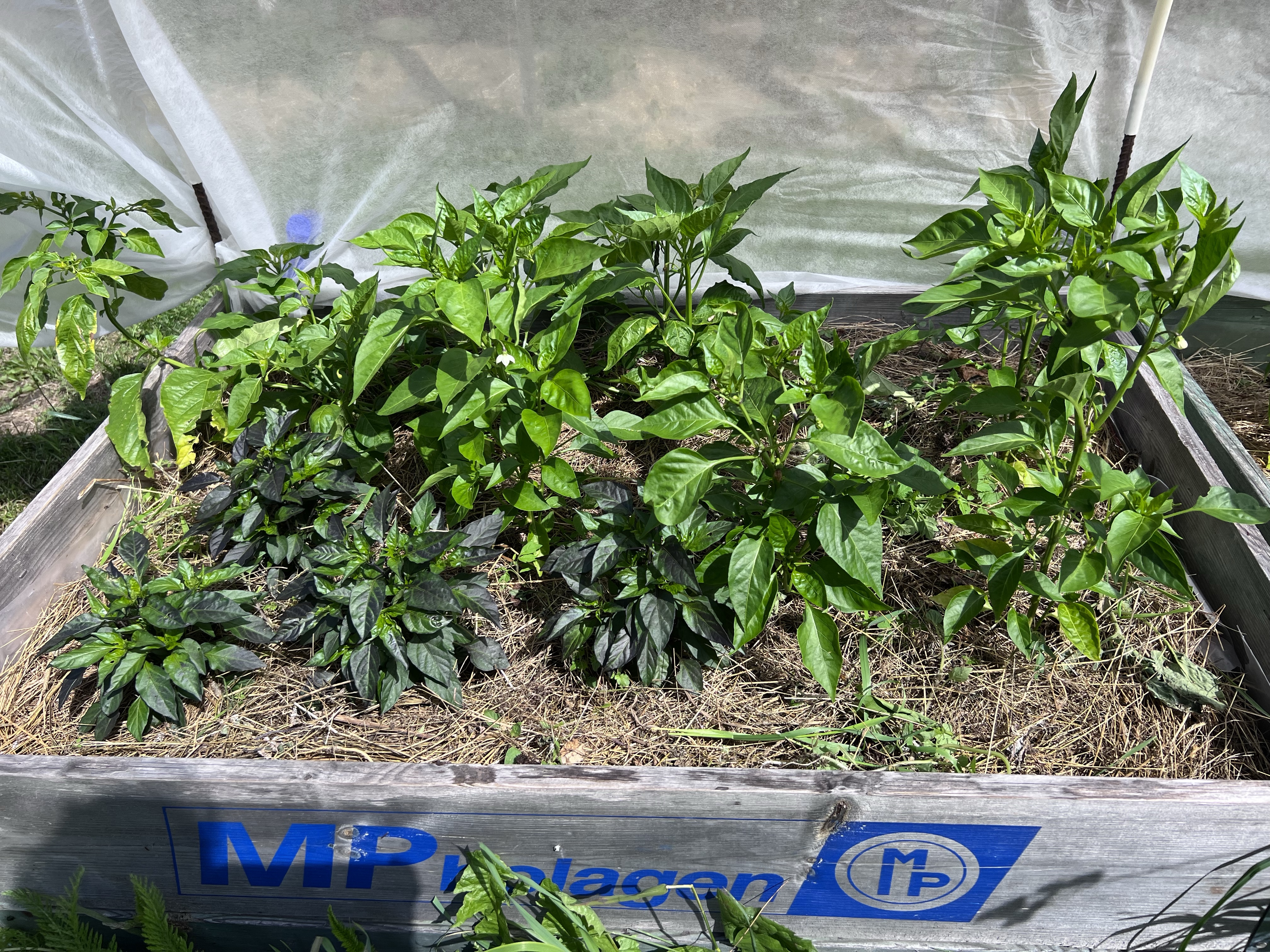 2023 års version av paprika och chili är väl typ nästan lika nedslående som 2022 och 2021. Nästan inget mognade fram på plantorna utan fick plockas och eftermogna på fat. Långsamt och många frukter blir lite skrynkliga och torra innan de är klarar. Mitt trick för att ändå kunna använda dom var att frysa in dom när de mognat och nu strax innan jul tog jag upp hela rasket och kokade sweetchilisås och chilisirap. Jag är nöjd med det resultatet även om jag är sur på själva odlingen av dom. Kanske får det bli tillbaka på ruta ett till nästa säsong, att de får bo i krukor i växthuset och vid behov får jag kånka ut och in med dom. Planen är att ha fler tomatplantor ute så då borde det ju kunna bli lite plats över.