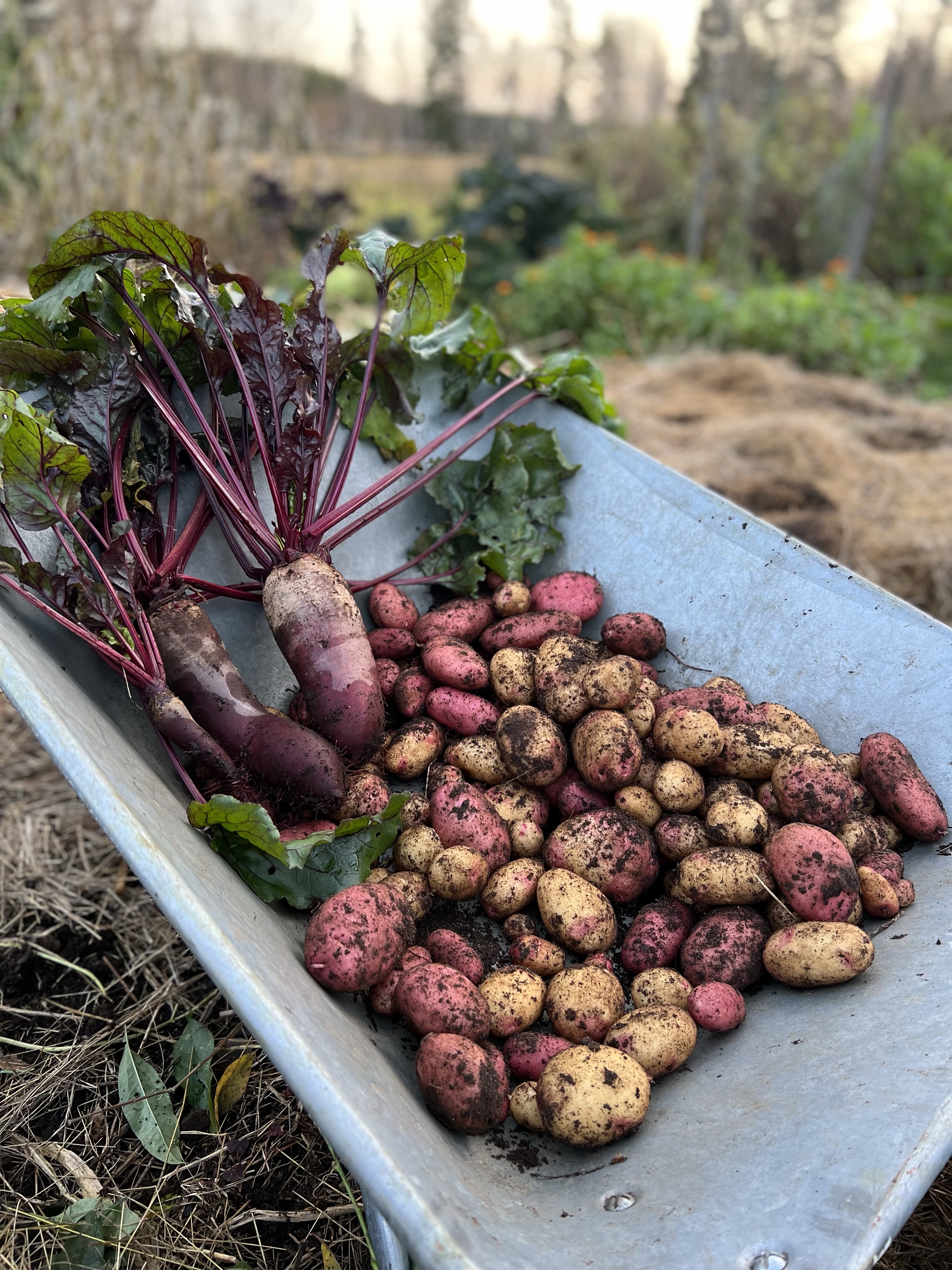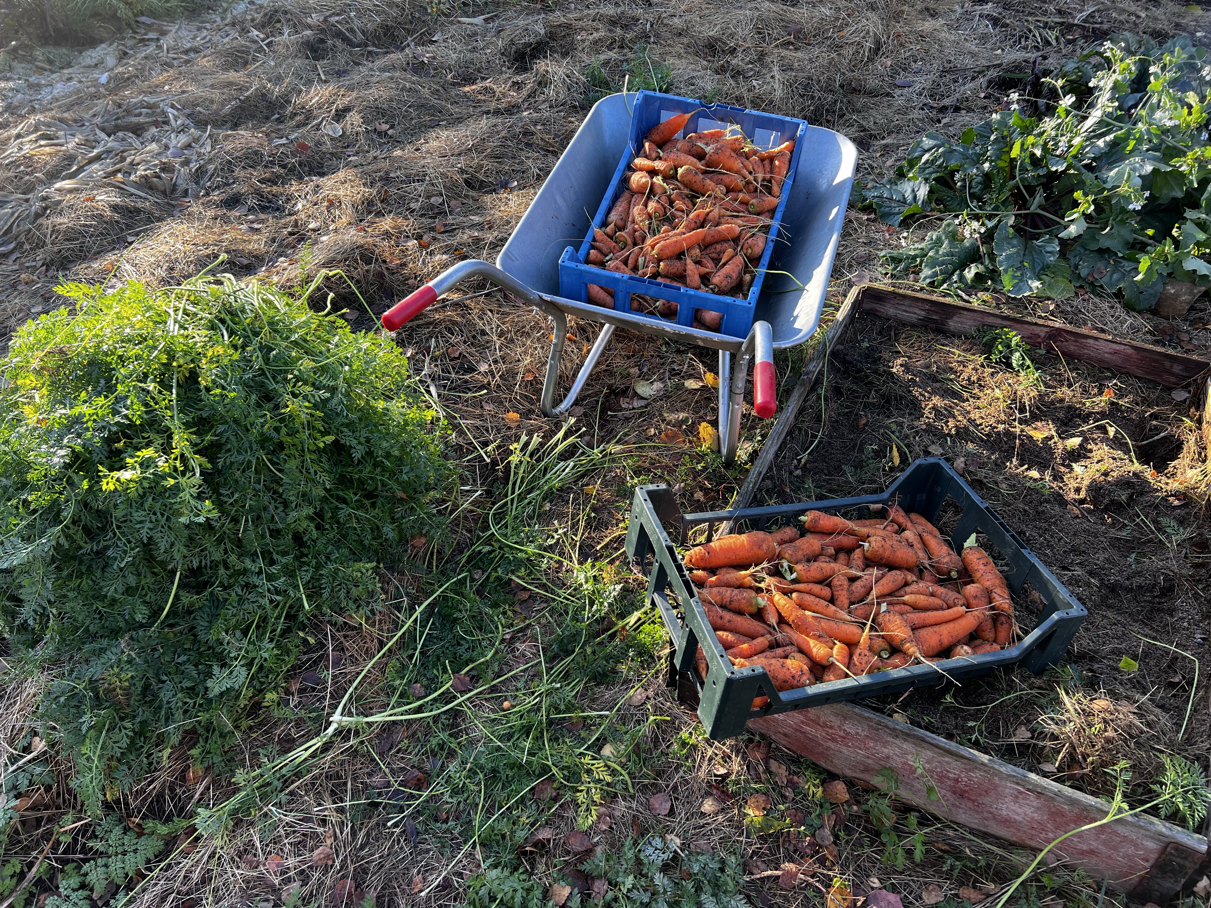 Rödbetorna har blivit fina, tänka att det som är så litet att det får plats i en fröpåse kan bli en hel hink med mat! Morötterna är också jättefina! De sistnämnda har ju vuxit helt i sand, vilket jag tycker är förundersamt, att de som fått endast gräsklipp vid ett par tillfällen i sommar kunnat växa till och faktiskt blivit riktigt fina morötter. Läste dessutom lite mer om morotsflugan i somras; den kan tydligen inte komma ner till moroten om det ligger gräsklipp i vägen 😏. Och jag som har flyttat runt min låda och bytt ut sanden för att jag trott att flugan kommer om jag har den kvar på samma plats och med samma sand. Man kan alltid lära sig nya saker när man odlar! Nästa år behöver jag alltså inte flytta på lådan 🥰