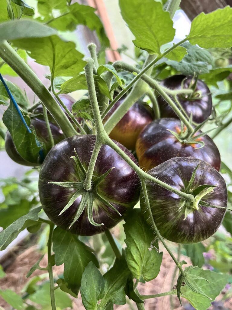 Svartröd bifftomat, god, bra och tålig. Kulturarvsort som jag beskrivit ett eget inlägg här